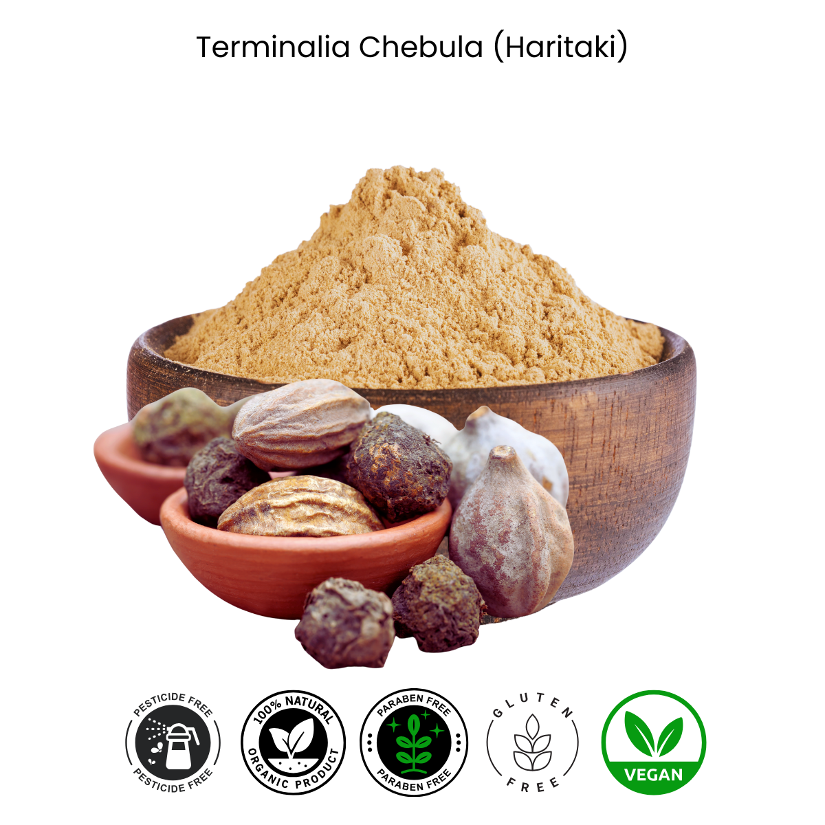 Haritaki Powder can be blended into homemade face masks, herbal cleansers, and natural hair packs for its skin‑purifying and scalp‑strengthening benefits.