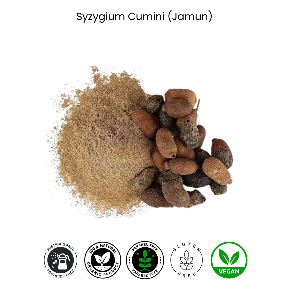 100% Pure Jamun Fruit Powder (Syzygium Cumini) – no added sugar, flavor, or preservatives.